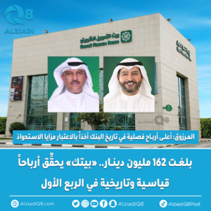 بلغت 162 مليون دينار.. «بيتك» يحقِّق أرباحاً قياسية وتاريخية في الربع الأول