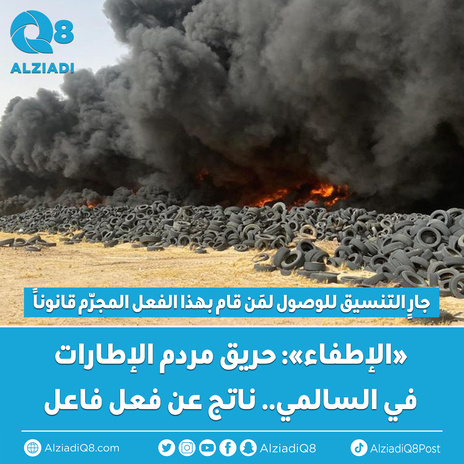 «الإطفاء»: حريق مردم الإطارات في السالمي.. ناتج عن فعل فاعل
