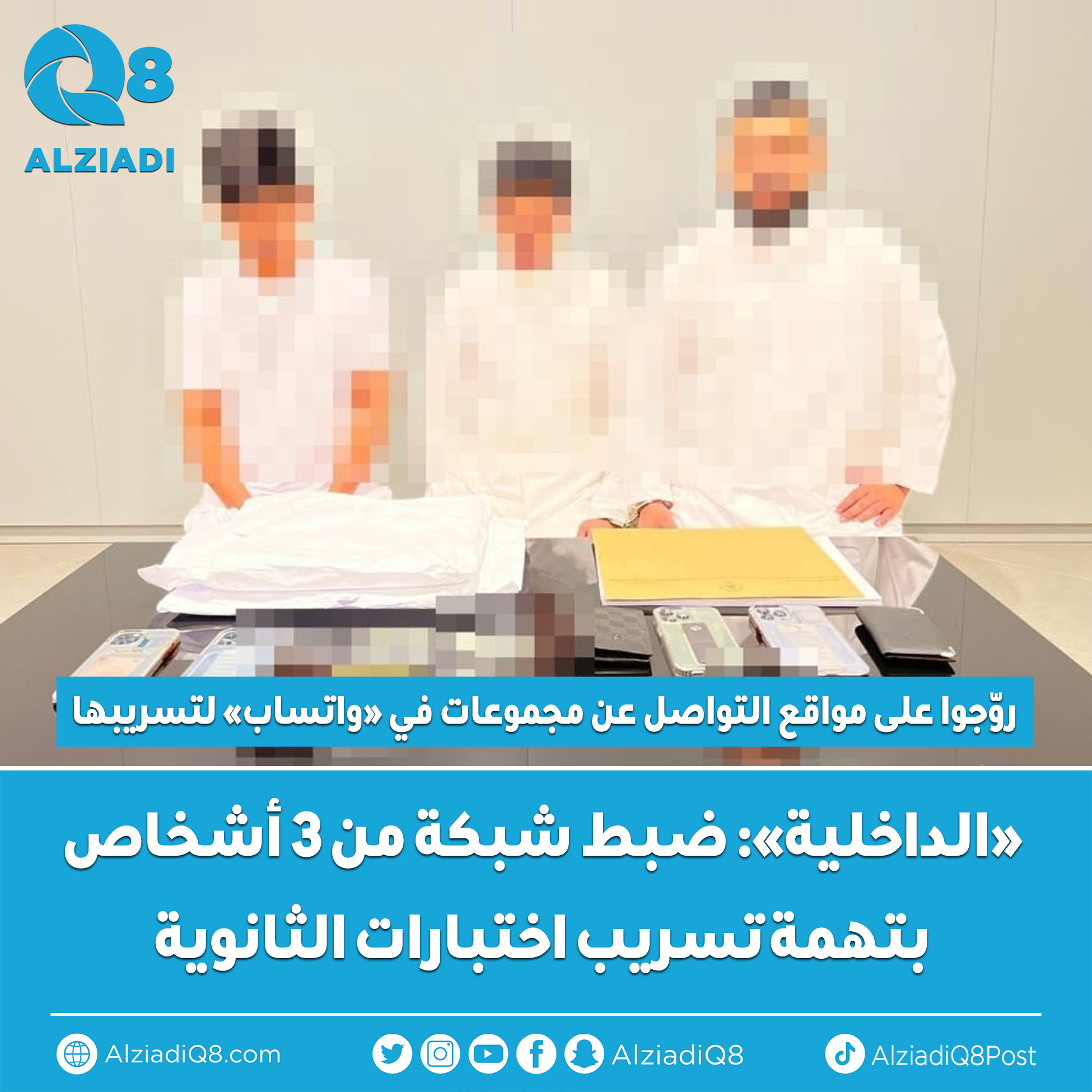ذكرت الإدارة العامة للعلاقات والإعلام الأمني بوزارة الداخلية أن رجال الإدارة العامة للمباحث الجنائية ممثلا في ادارة مكافحة جرائم المال تمكنت من ضبط شبكة مكونة من «3» أشخاص بتهمة تسريب اختبارات الثانوية العامة بجميع مراحلها.