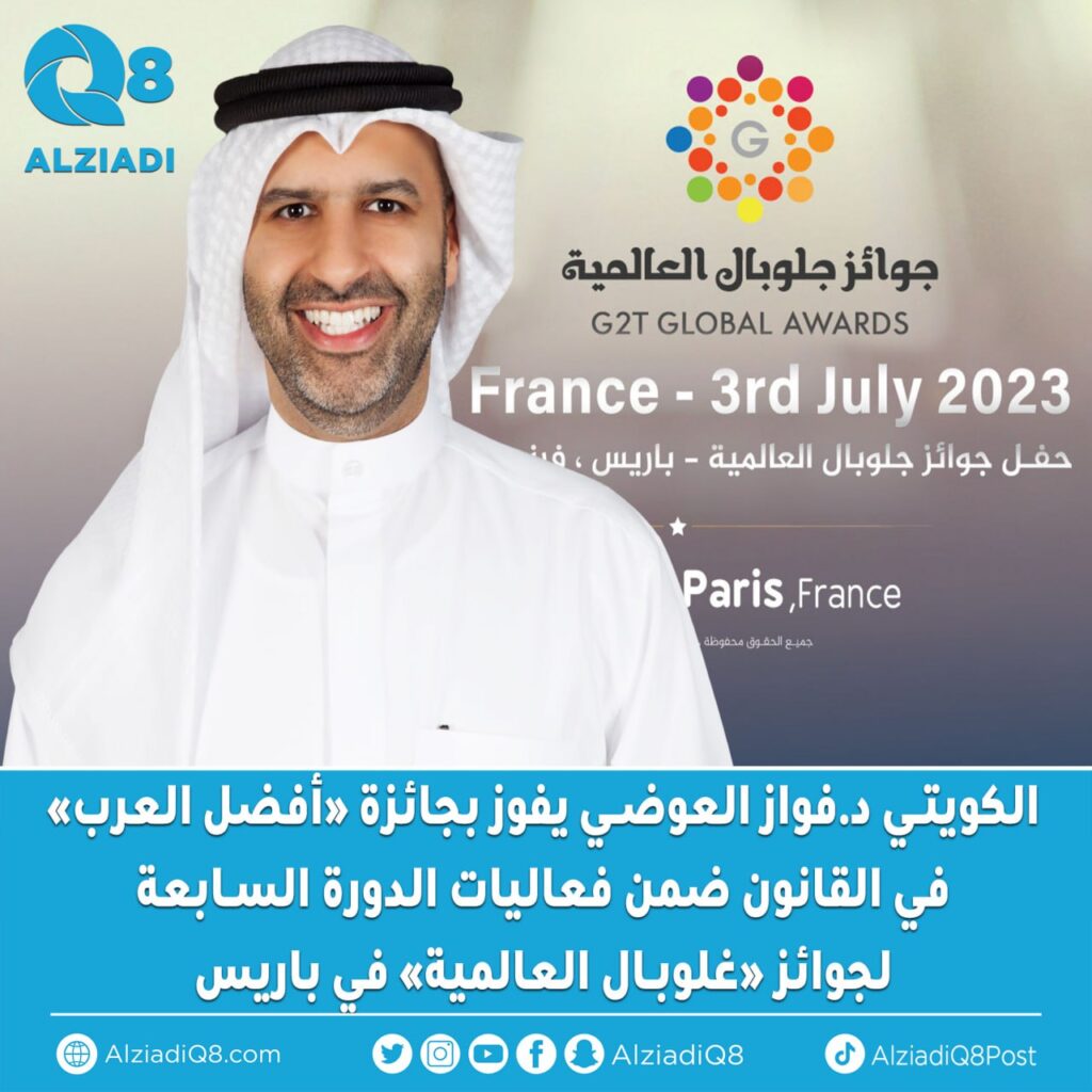 فاز القانوني الكويتي الدكتور فواز محمد العوضي بجائزة التميز المهني العربي (أفضل العرب) 2023 في مجال القانون ضمن فعاليات الدورة السابعة لجوائز “غلوبال العالمية” التي أقيمت بالعاصمة الفرنسية باريس.