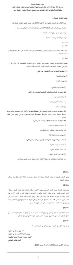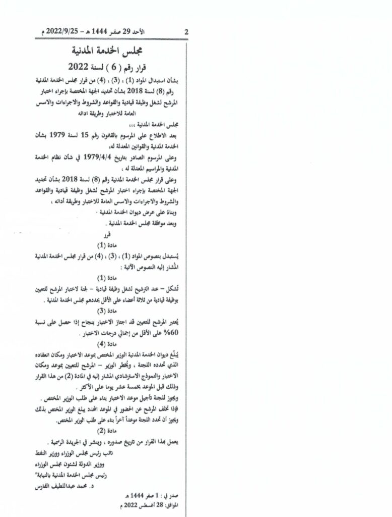 - الأخ سمو رئيس مجلس الوزراء.. إلغاء قرار ديوان الخدمة المدنية رقم ٨ لسنة ٢٠١٨ بشأن شغل الوظائف القيادية الذي يحدد معايير ومتطلبات تعيين القياديين بشفافية وعدالة ووضوح بعيداً عن الاستثناءات التي لم تكن موجودة قبل تعيينك واستبداله بالقرار رقم ٦ لسنة ٢٠٢٢ ثم الغاءه واستبداله بالقرارين ١٨ لسنة ٢٠٢٣ و ٢٥ لسنة ٢٠٢٣ ، اللذان يلغيان كافة المعايير والمتطلبات الموضوعية لتستبدلها بسلطة تقديرية لثلاث وزراء.. هل القيام بذلك هو من باب سياسة تصحيح المسار؟!