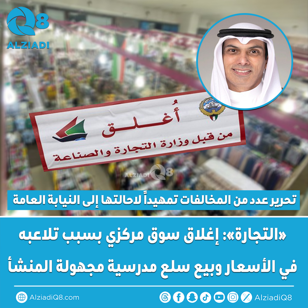 قالت إدارة الرقابة التجارية في وزارة التجارة إنه بناء على تشديد وزير التجارة محمد العيبان في محاربة الأسعار، واستمراراً في الجولات الميدانية للرقابة علي الأسواق تزامنا مع عودة المدارس، أغلقت الإدارة سوق مركزي بسبب تلاعبه في الأسعار، وبيعه سلع مدرسية دون بلد المنشأ.