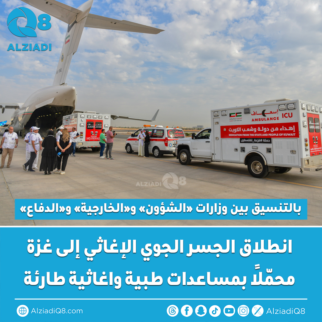 وأشار إلى أن الطائرات الإغاثية ستستمر في إيصال المساعدات للأشقاء الفلسطينيين في غزة، تأكيداً لموقف دولة الكويت الدائم في تقديم العون والاغاثة لكل شعوب العالم.