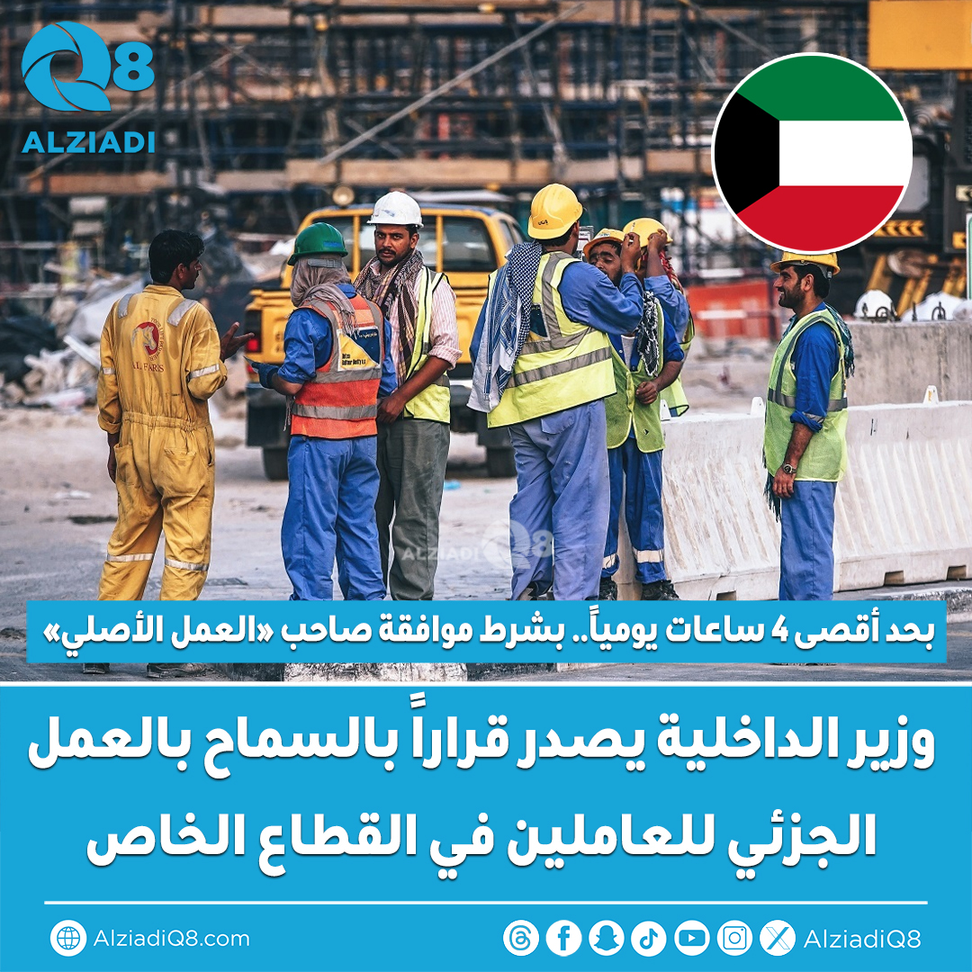أصدر النّائب الأول لرئيس مجلس الوزراء وزير الداخلية الشيخ طلال الخالد قراراً وزاريّاً يقضي بجواز العمل الجزئي لدى الغير (صاحب عمل آخر) بشرط موافقة صاحب العمل الأصلي، على أن يسري تطبيق هذا القرار في بداية شهر يناير 2024.