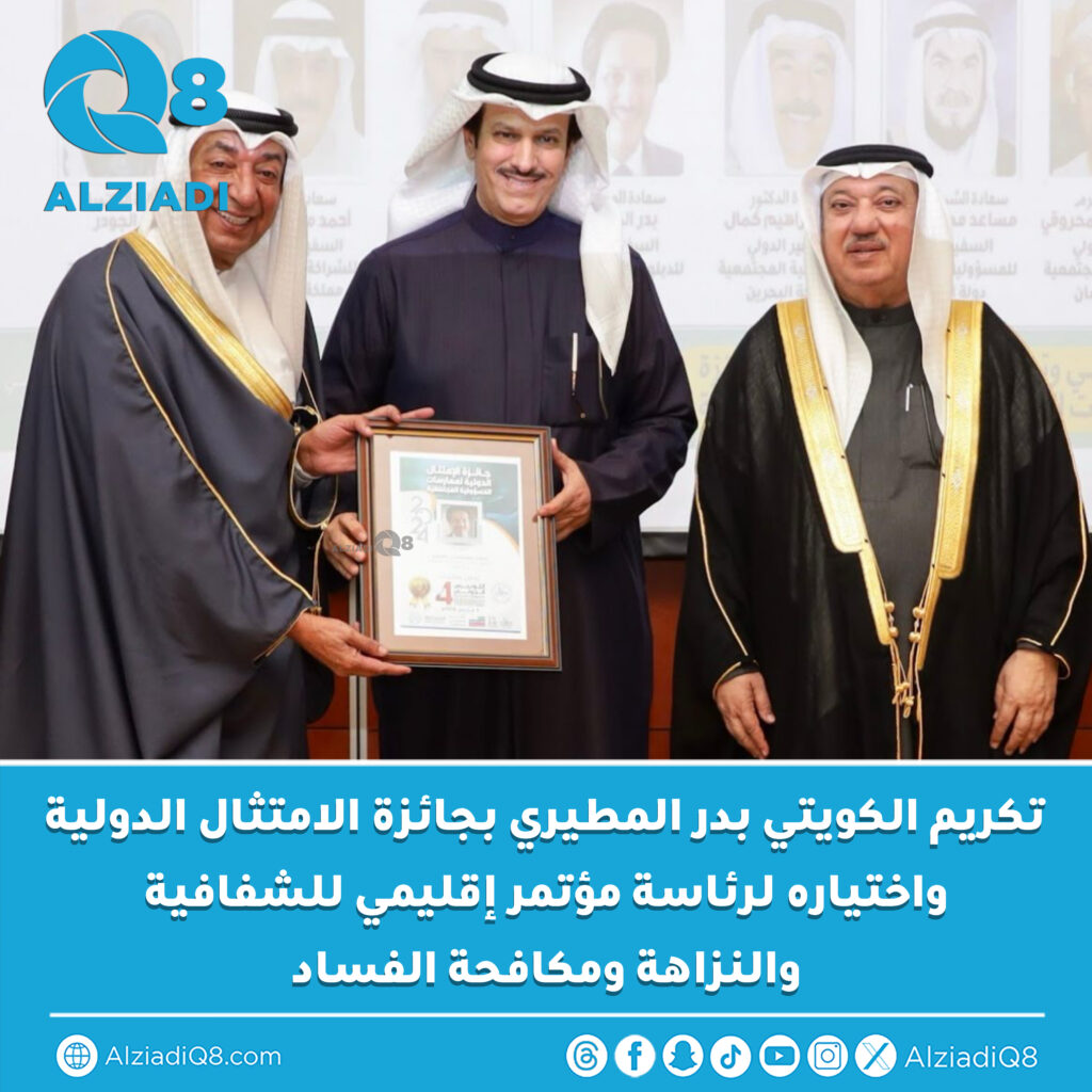 تكريم الكويتي بدر المطيري بجائزة الامتثال الدولية واختياره لرئاسة مؤتمر إقليمي للشفافية والنزاهة ومكافحة الفساد