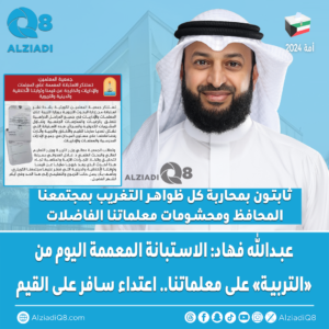 أكد مرشح مجلس الأمة 2024 عن الدائرة الرابعة م.عبدالله فهاد أن الاستبانة المعممة اليوم من قبل وزارة التربية على معلماتنا وإدارياتنا الفاضلات بخصوص الاستفسار عن الرغبات الجنسية والمشروبات الكحولية والسجائر والمخدرات وغيرها، تعتبر اعتداء سافر على القيم والثوابت الدينية والأخلاقية والاحتماعية ، وانحدار بالعملية التربوية عبر التشكيك المبطن بأخلاقيات بناتنا وأخواتنا المعلمات. وهو أمر مرفوض تماماً .
