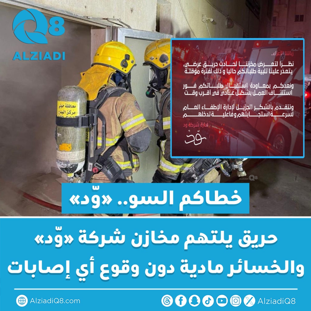 حريق هائل في مخازن شركة «وّد» تسبب في تأخير توصيل طلبات العملاء