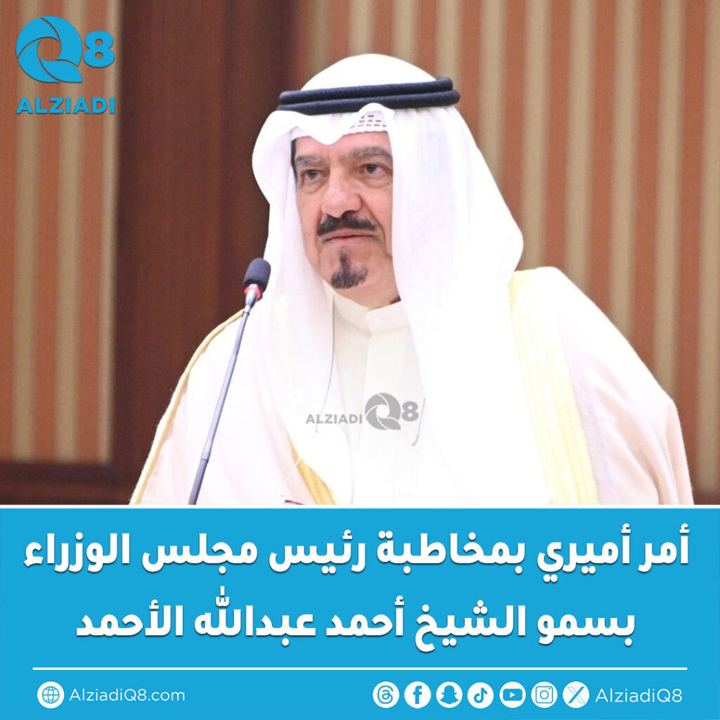 أمر أميري بمخاطبة رئيس مجلس الوزراء بسمو الشيخ أحمد عبدالله الأحمد الصباح رئيس مجلس الوزراء