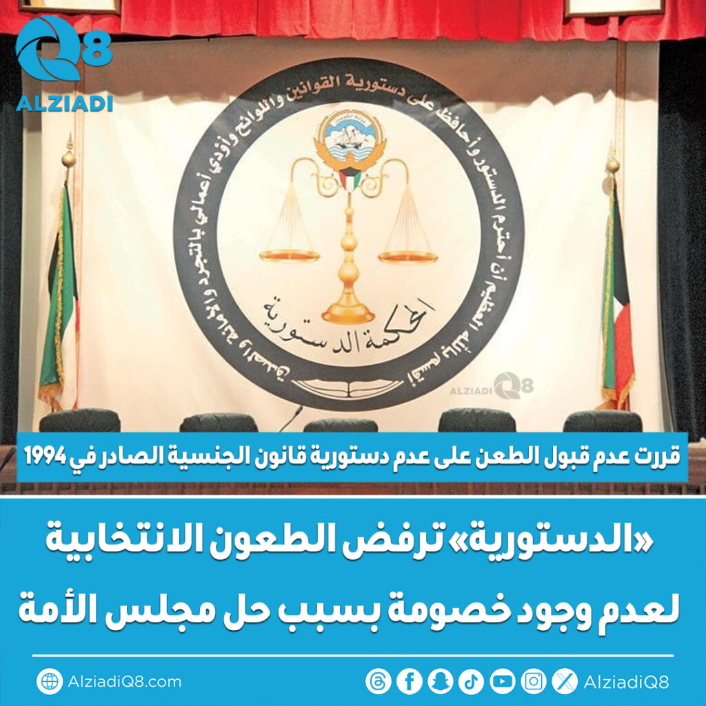 كما حكمت بعدم قبول جميع الطعون الانتخابية لعدم وجود خصومة بسبب حل مجلس الأمة.