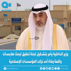 أمر النائب الأول لرئيس مجلس الوزراء ووزير الدفاع ووزير الداخلية الشيخ فهد اليوسف الصباح بتشكيل لجنة تحقيق خاصة للوقوف على ظروف واقعة وفاة أحد نزلاء المؤسسات الإصلاحية.