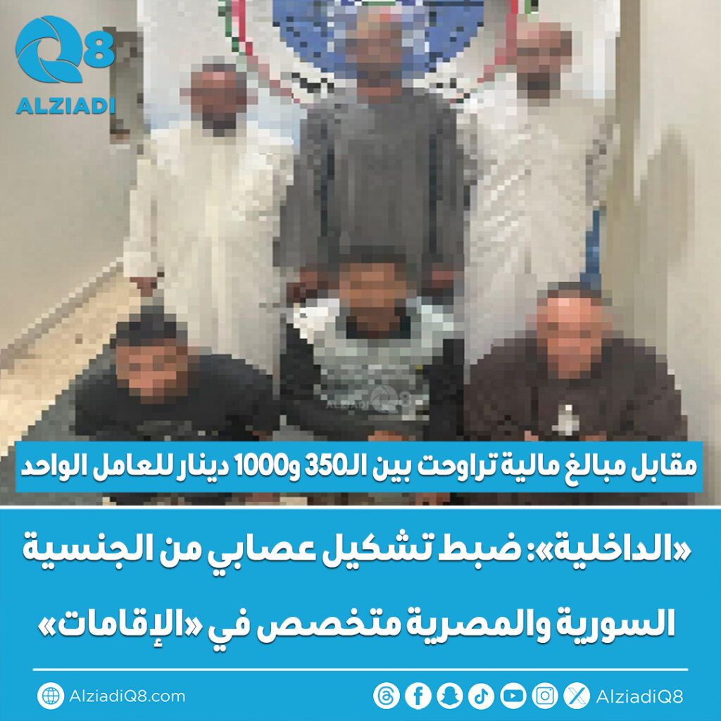 ذكرت إدارة العلاقات والإعلام الأمني في وزارة الدخلية أنه بناءً على تعليمات النائب الأول لرئيس مجلس الوزراء ووزير الدفاع ووزير الداخلية الشيخ فهد اليوسف، وفي إطار الجهود الأمنية المستمرة لضبط تجارة الإقامات والقضاء عليها، تمكن قطاع شؤون الإقامة ممثلاً في الإدارة العامة لمباحث شؤون الإقامة – إدارة البحث والتحري – من ضبط تشكيل عصابي مكوّن من (6) أشخاص من الجنسية السورية والمصرية تورطوا بالإتجار في الإقامات، عبر إنشاء شركات وهمية غير قائمة على أرض الواقع عن طريق التزوير والتلاعب بالمستندات.