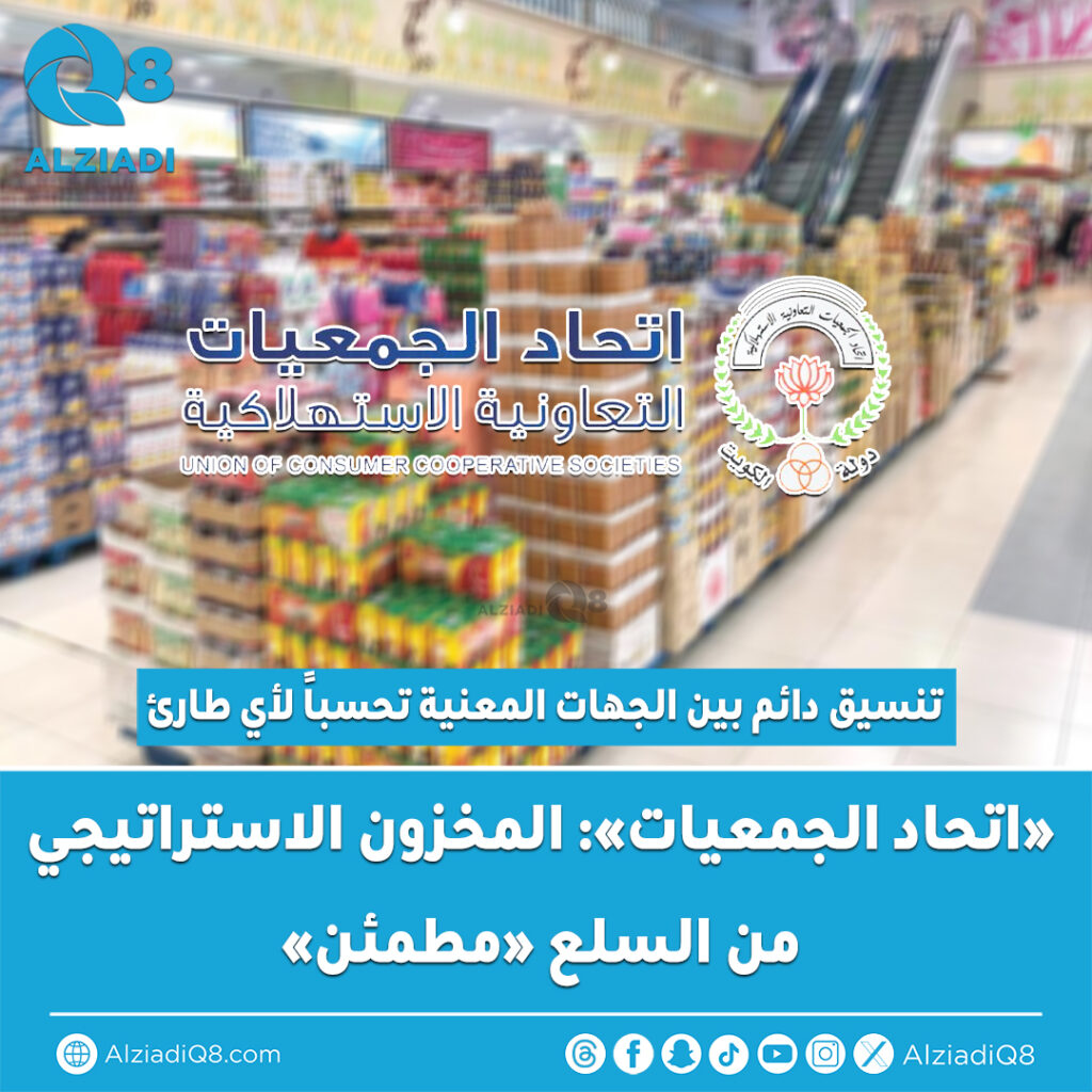 أكد رئيس اتحاد الجمعيات التعاونية الاستهلاكية مصعب الملا اليوم الخميس، ترشيح الاتحاد ليكون ضابط اتصال ومنسقاً رسمياً مع عدد من الجهات الحكومية، تحسباً لأي حالة طوارئ بعد الأحداث الأخيرة في المنطقة، مؤكداً أن المخزون الاستراتيجي من السلع مطمئن.