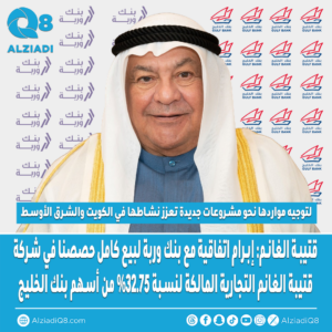 قتيبة الغانم: إبرام اتفاقية مع بنك وربة لبيع كامل حصصنا في شركة قتيبة الغانم التجارية المالكة لنسبة 32.75% من أسهم بنك الخليج