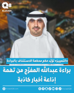 أصدرت محكمة التمييز، اليوم الاثنين، حكمها بتأييد حكم محكمة الاستئناف القاضي ببراءة المرشح السابق عبدالله محمد المفرّج من تهمة إذاعة أخبار كاذبة.