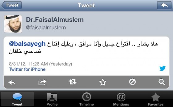 وهذا أيضاً اقتراح مباشر من أحد المغردين لـ المسلم وخلفان لإنهاء الموضوع والمواجهه.. وافق المسلم ولم يرد خلفان